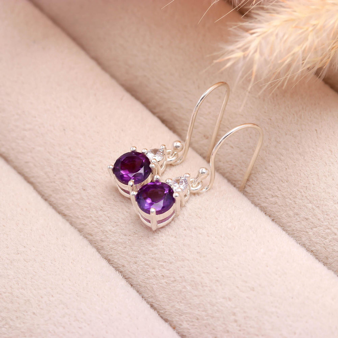 Genuine Amethyst and White Zircon Silver Earrings for Women