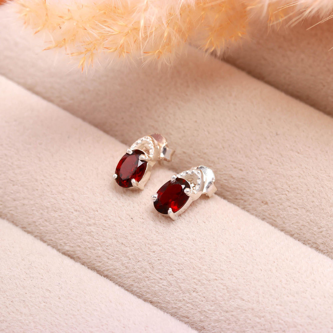 Garnet Studs in Sterling Silver