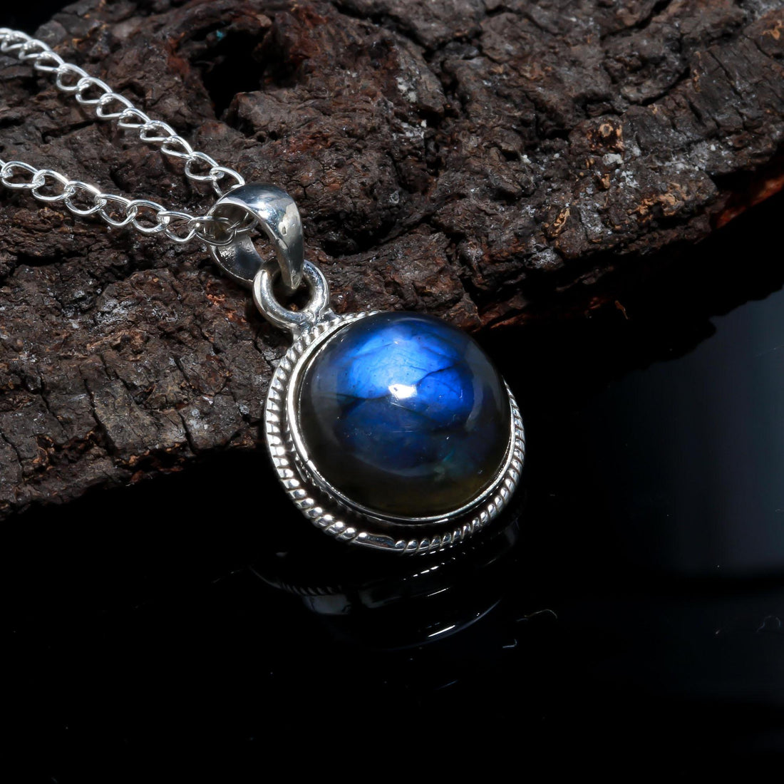 Natural Blue Labradorite 925 Sterling Silver Pendant
