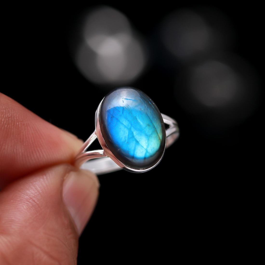 Genuine Labradorite Adjustable Solid Silver Ring For Emotional Balance and Creativity