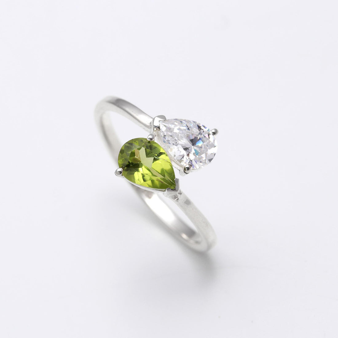 Elevate your style with our exquisite Peridot and Zircon Sterling Silver Ring. This stunning piece...