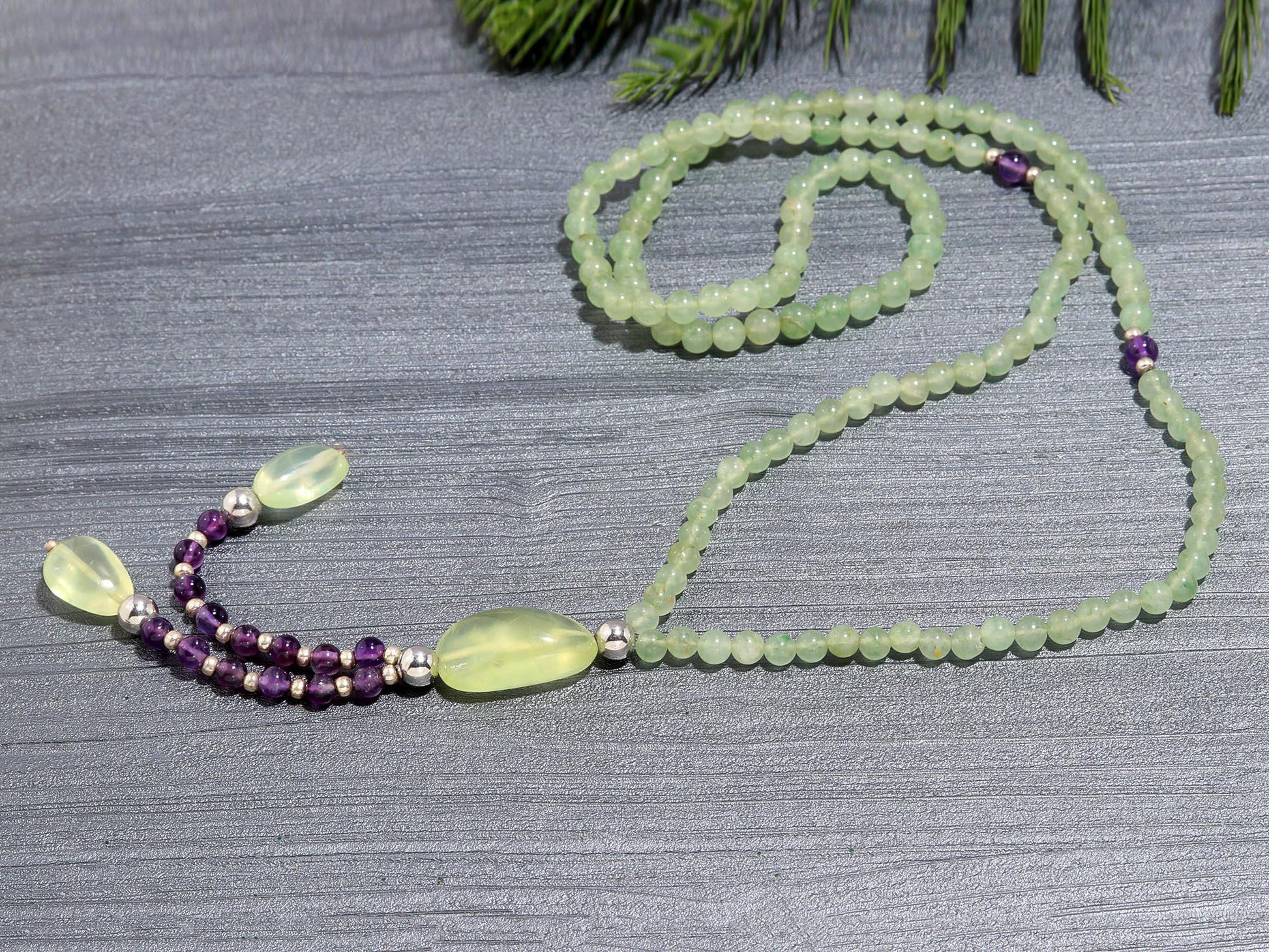 Genuine Amethyst and Prehnite Necklace with 925 Silver For Women