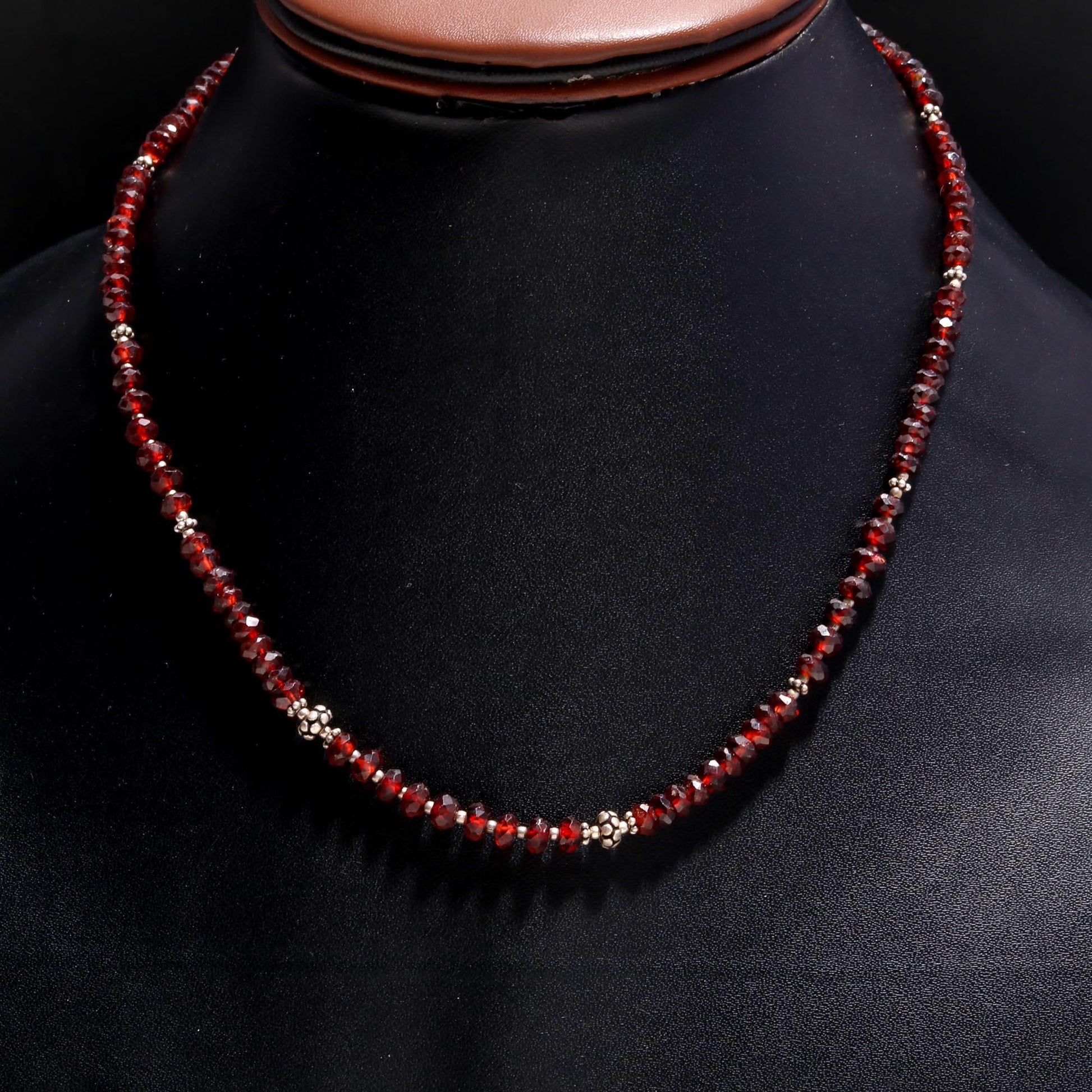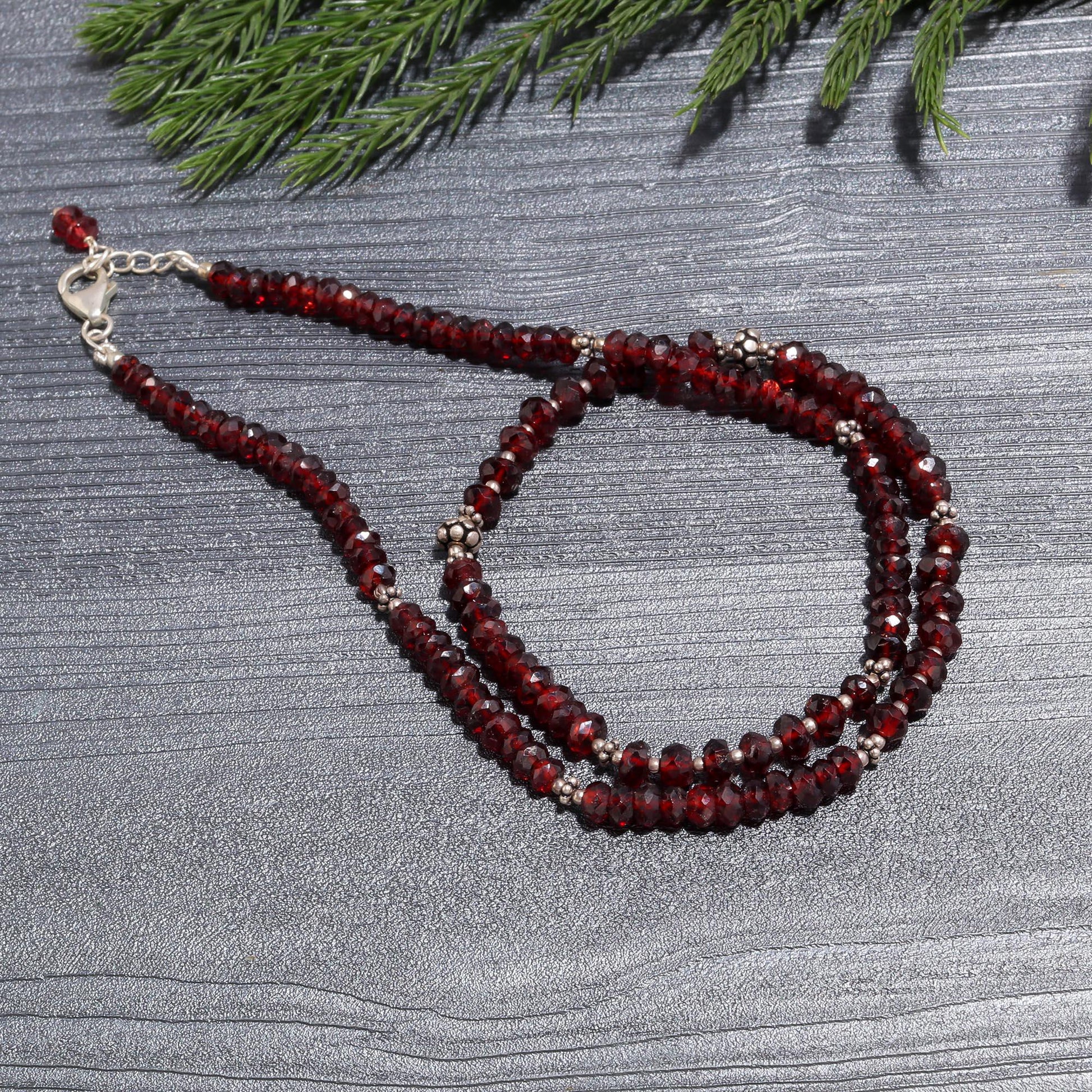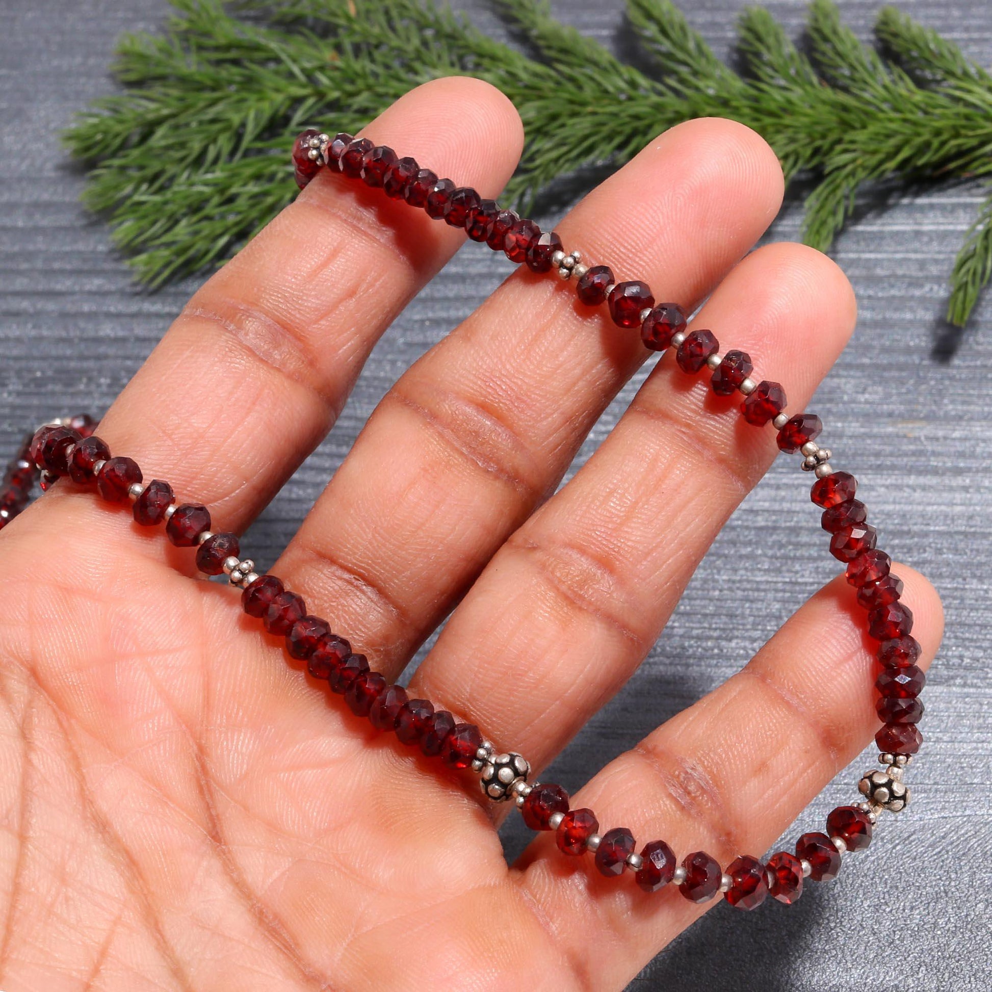 Authentic Red Garnet: Features a continuous strand of small, sparkling faceted Red Garnet beads, showcasing the stone's natural deep red brilliance.