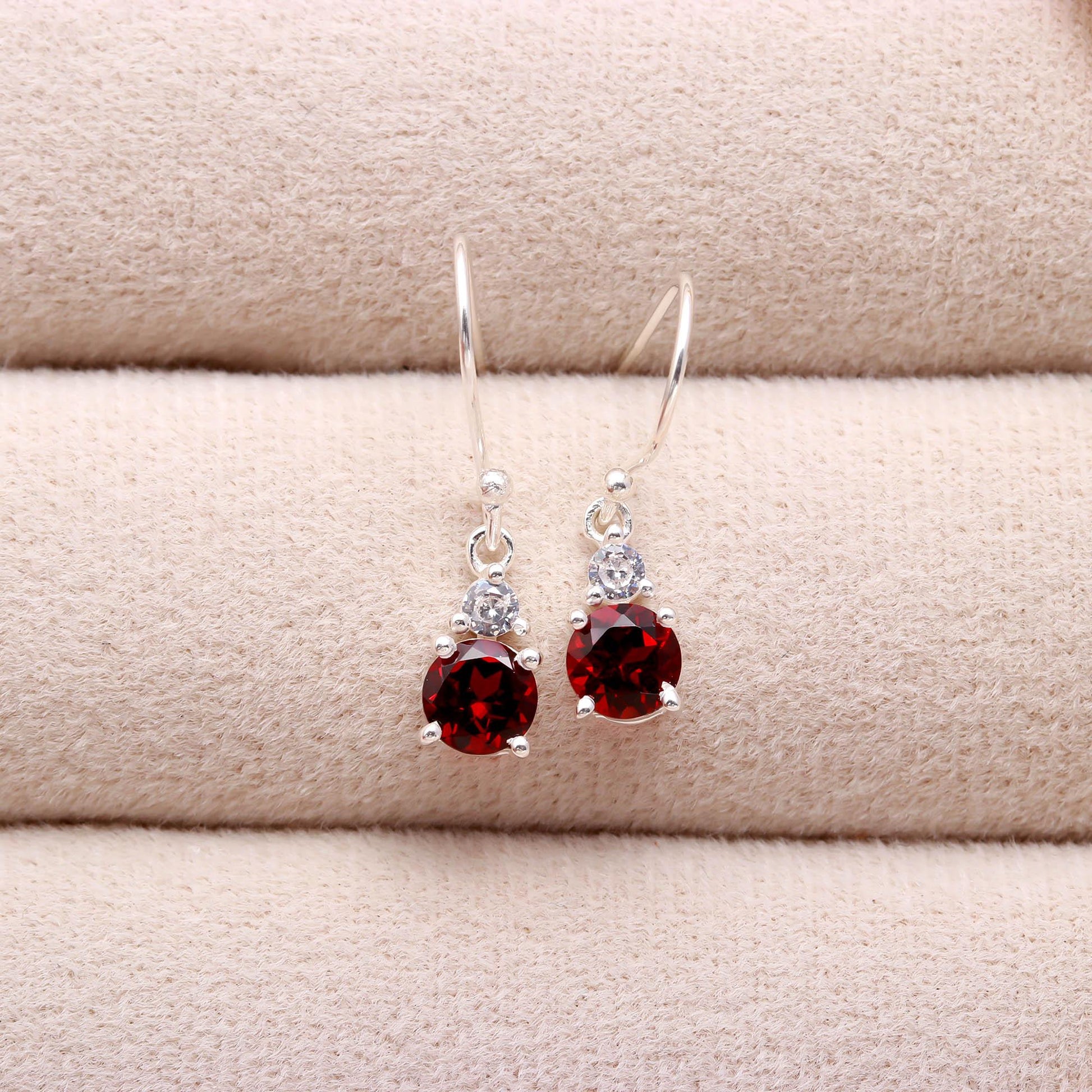 Dainty Sterling Silver Garnet and Zircon Drop Earrings