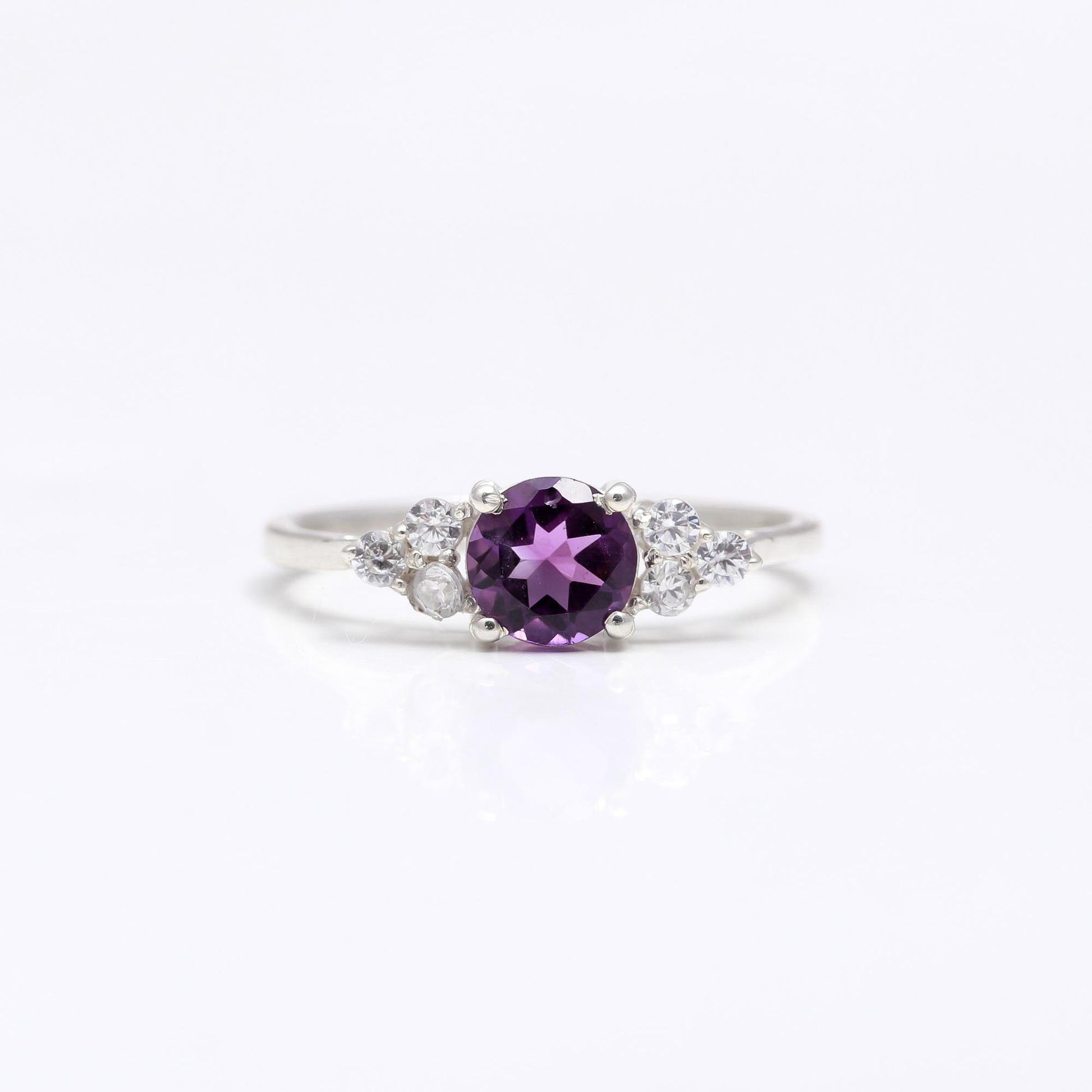 Genuine Amethyst with Zircon Sterling Silver Ring