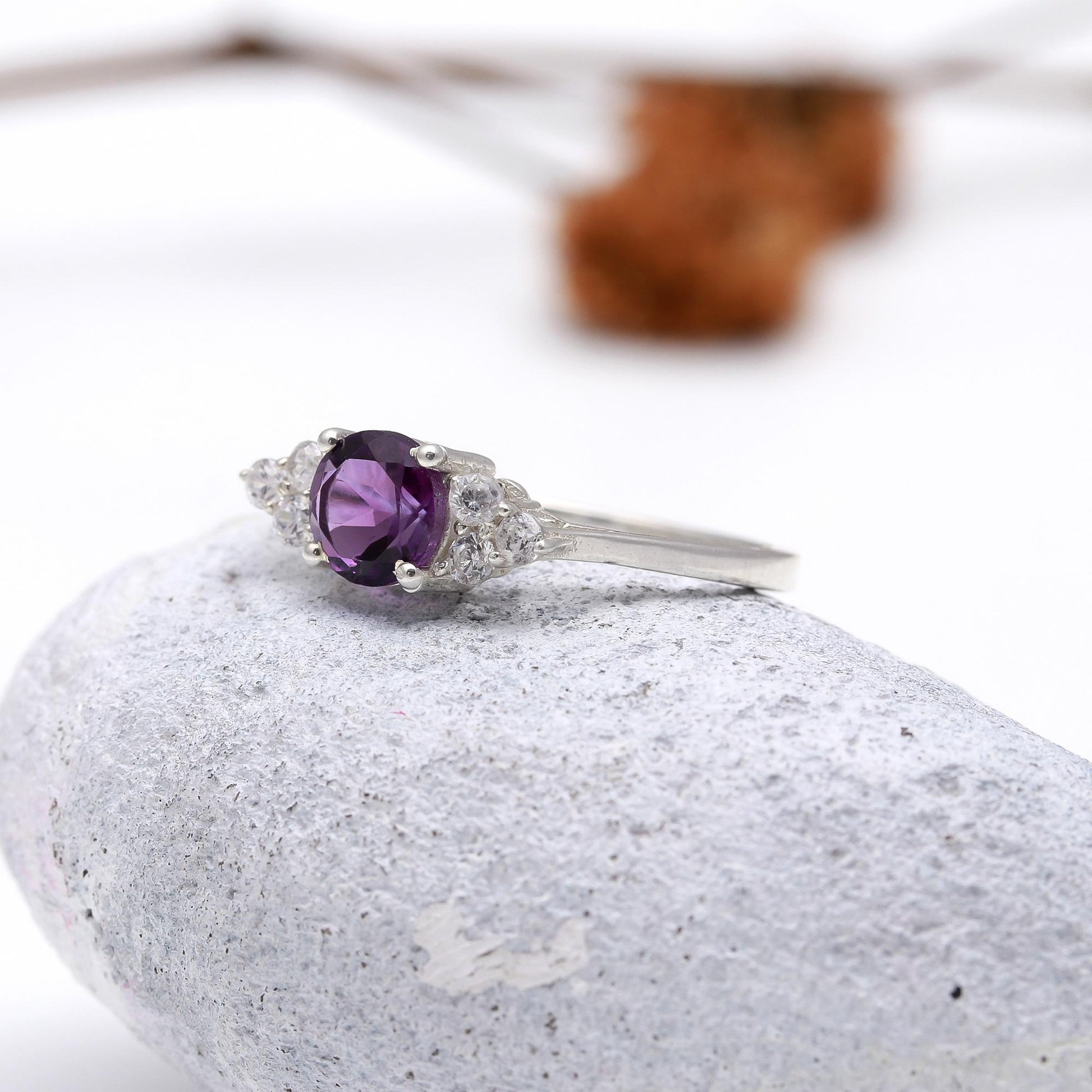 This amethyst and zircon sterling silver ring is a captivating piece of jewelry that combines the beauty of amethyst and zircon gemstones with the elegance of sterling silver. The ring showcases a stunning amethyst stone, known for its mesmerizing purple hue, surrounded by shimmering zircon accents. Crafted with high-quality sterling silver, this ring offers a perfect blend of sophistication and charm. It is a versatile accessory that can effortlessly elevate any outfit, making it a cherished addition to your jewelry collection.