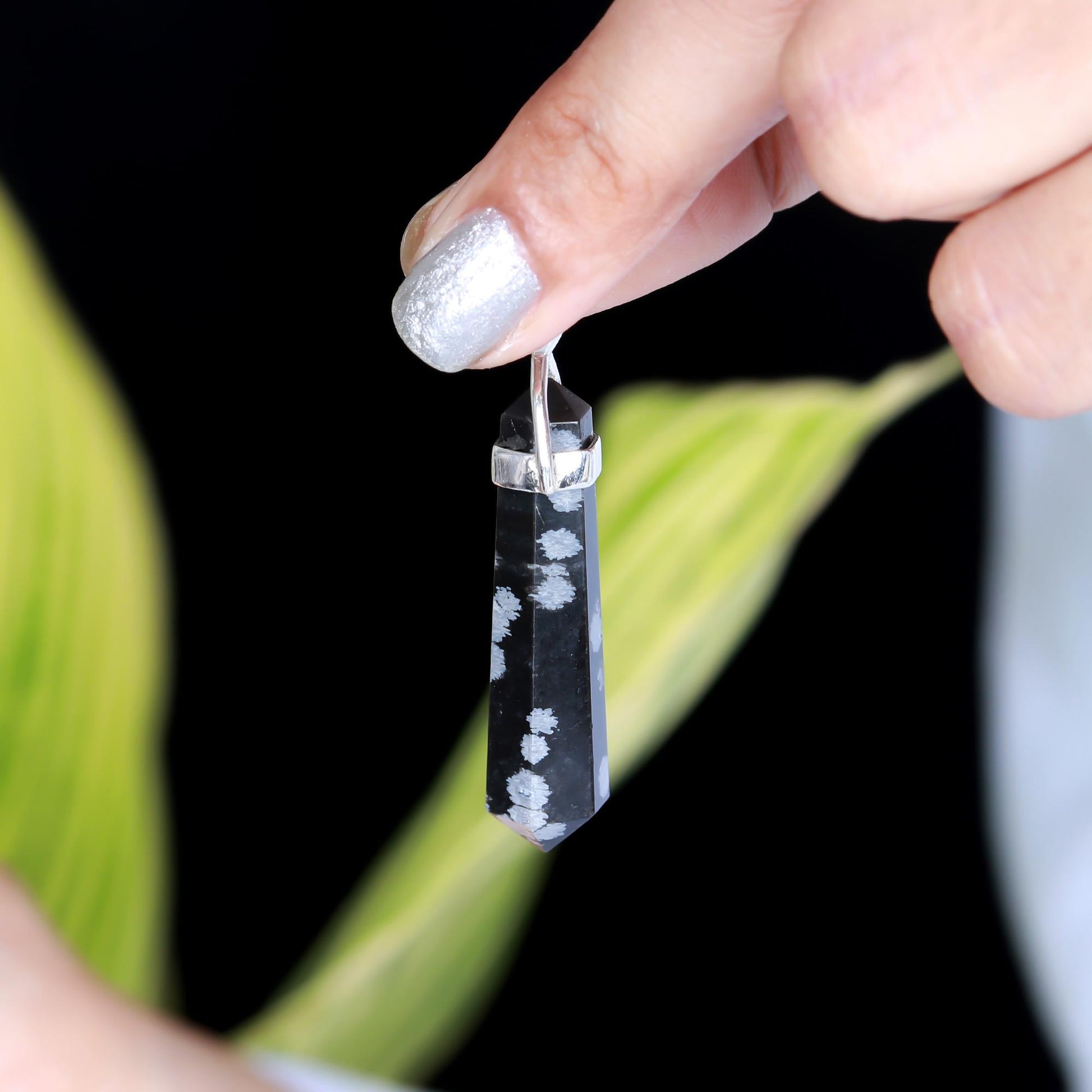Genuine Snowflake Obsidian Pendant in Solid Silver For Balanced Mind
