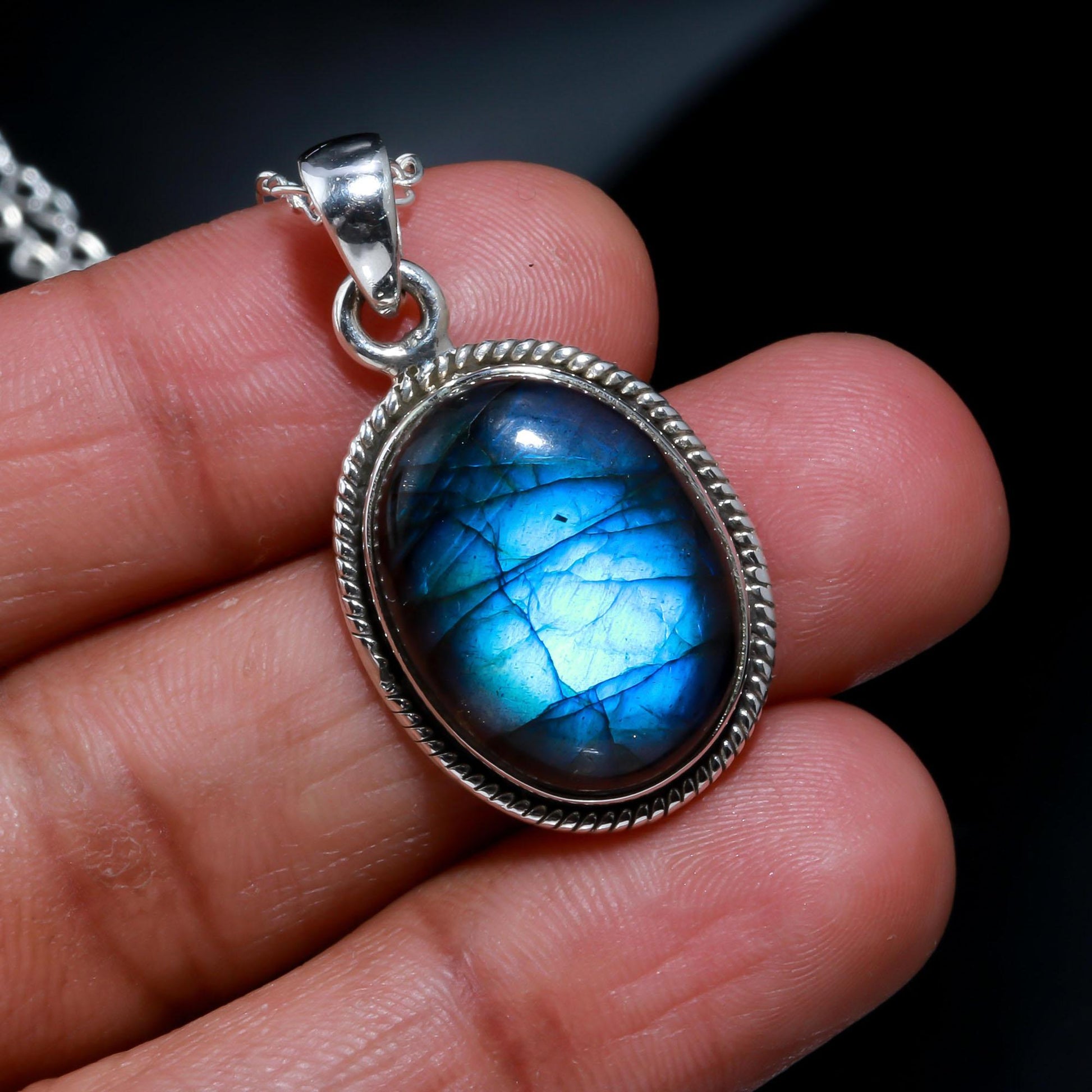 Natural Fiery Labradorite 925 Sterling Silver Pendant